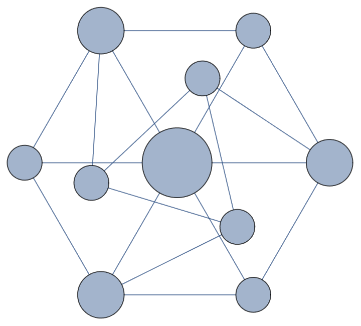 ResourceFunction["VertexSizeScaledGraph"][graph] visualize a graph with scaled VertexSize based on on custom graph related measures. |