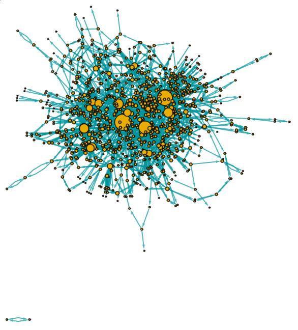 VertexSizeScaledGraph of the Actinobacillus Actinomycetemcomitans Metabolic Network scaled in two different ways: