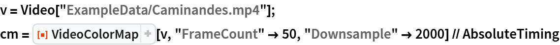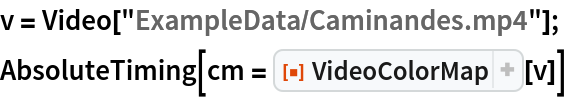 ResourceFunction["VideoColorMap"][video] creates an “color map” of the given video. |