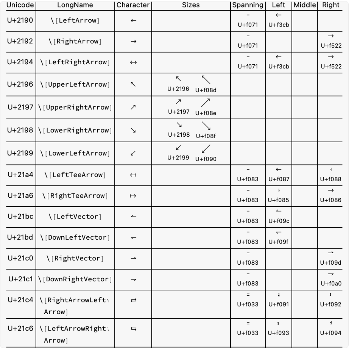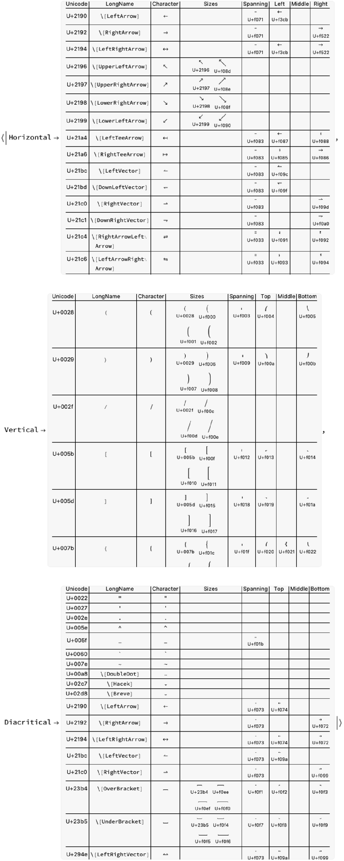Display a table of all horizontal or vertical spanning characters used by the current Wolfram Notebook front end