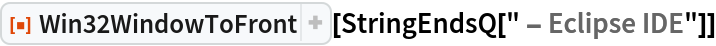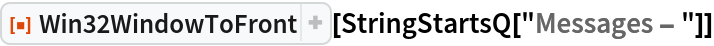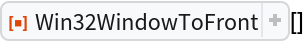 ResourceFunction["Win32WindowToFront"][func] finds the window for which the given function func returns True when it is passed the window’s title, and brings it to the foreground. |