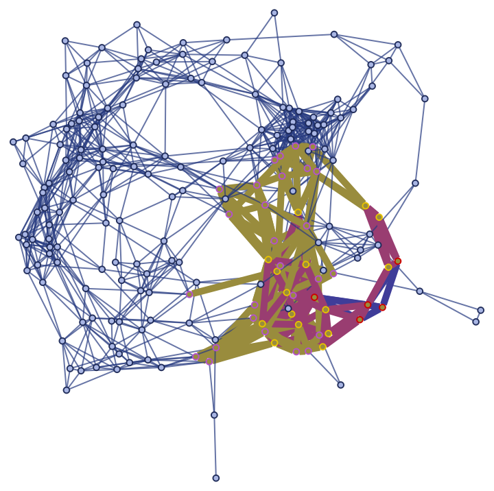 Show the geodesic balls with radii up to 3 as a highlighted graph: