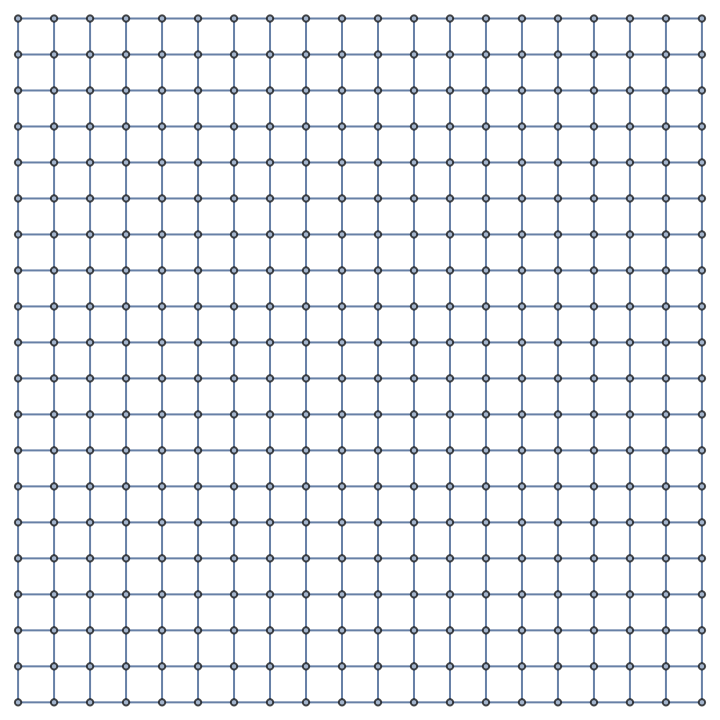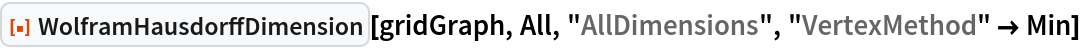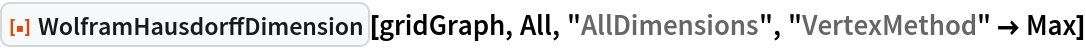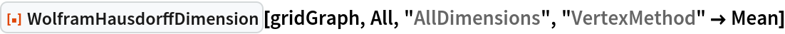 Return an Association showing the Wolfram–Hausdorff dimension at each vertex in a 20-by-20 2-dimensional grid graph (default):