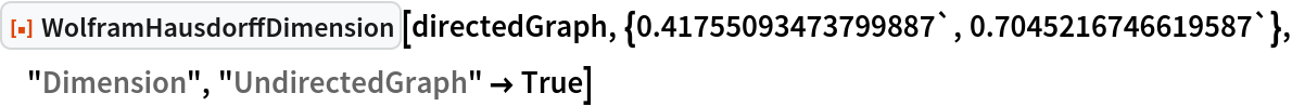 However, WolframHausdorffDimension can be made to treat directed graphs as though they were undirected (and hence revert to using geodesic balls) with the option "UndirectedGraph":