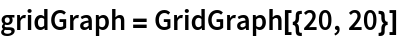 Compute the Wolfram–Hausdorff dimension at vertex 150 in a 20-by-20 2-dimensional grid graph: