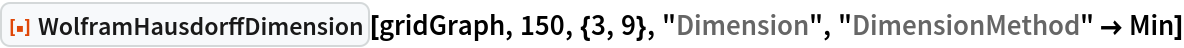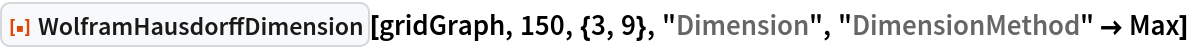 ResourceFunction["WolframHausdorffDimension"][…,"prop"] gives the property "prop" for the specified Wolfram–Hausdorff dimension computation. |