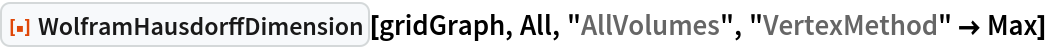 ResourceFunction["WolframHausdorffDimension"][graph,dim,All,rad] gives an association using maximum ball radius rad. | |
