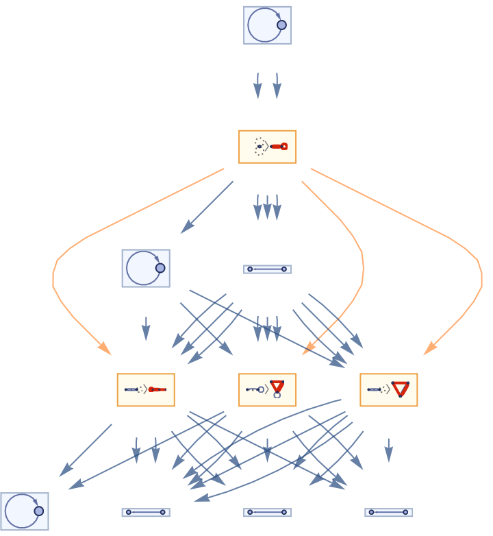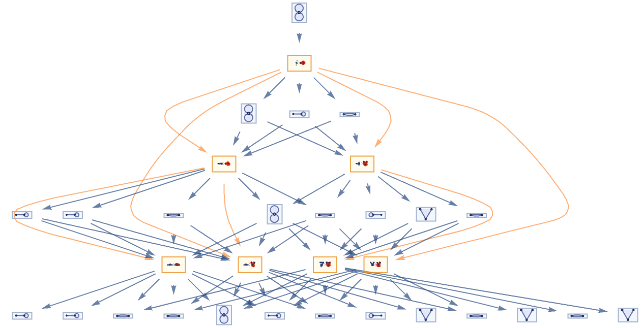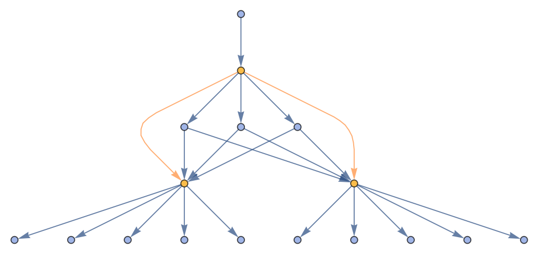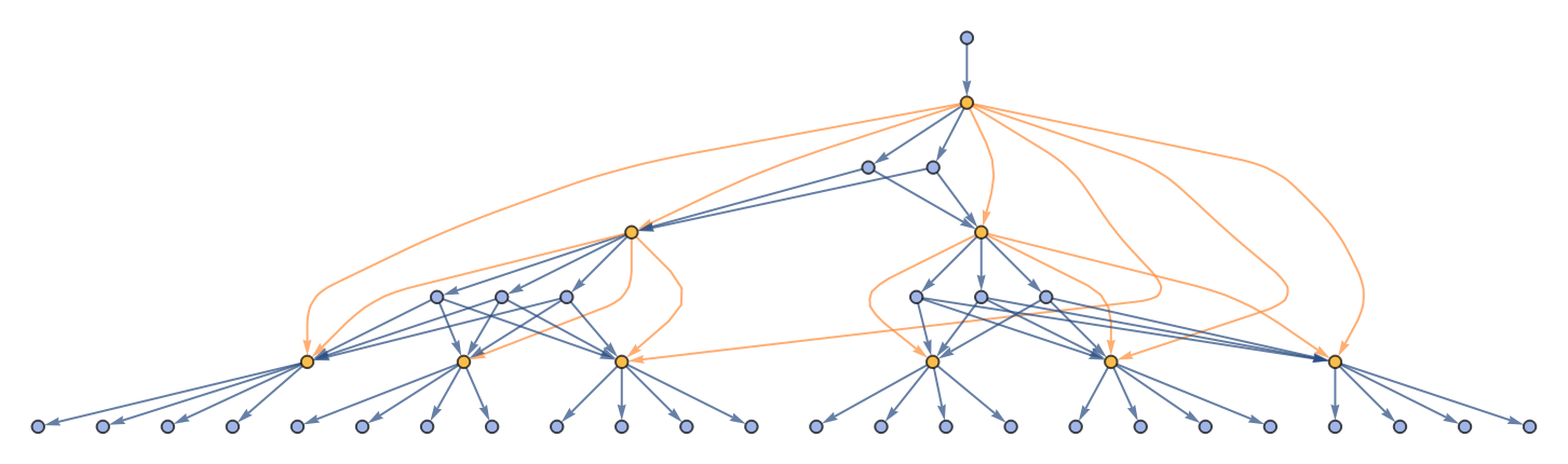 ResourceFunction["WolframModelGlocalMultiwaySystem"][rules→sel,init,n] uses the function sel to select which of the events obtained at each step to include in the evolution. |