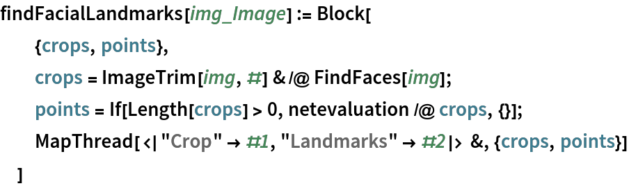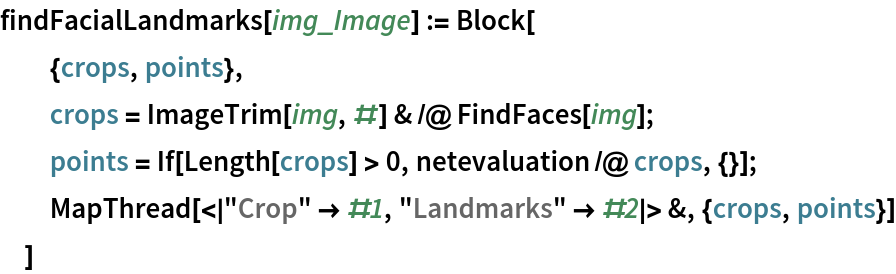 Write an evaluation function that crops the input image around faces and returns the crops and facial landmarks:
