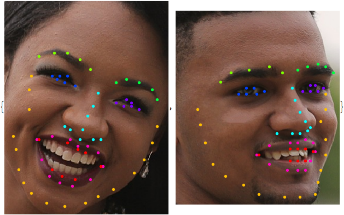 Developed in 2017 at the Computer Vision Laboratory at the University of Nottingham, this net predicts the locations of 68 2D keypoints (17 for face contour, 10 for eyebrows, 9 for nose, 12 for eyes, 20 for mouth) from a facial image. For each keypoint, a heat map for its location is produced. Its complex architecture features a combination of hourglass modules and multiscale parallel blocks.
