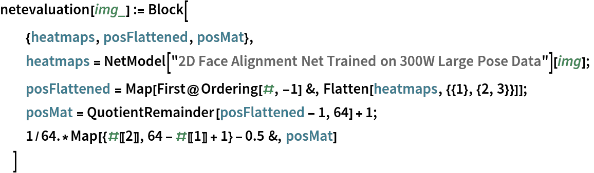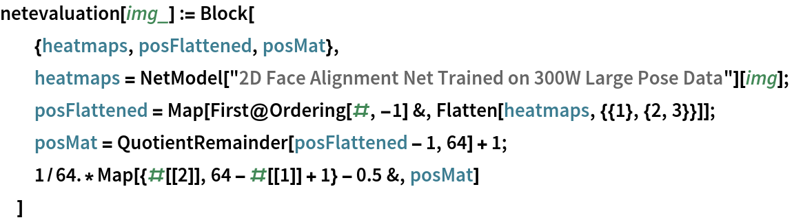 Write an evaluation function that picks the maximum position of each heat map and returns a list of landmark positions:
