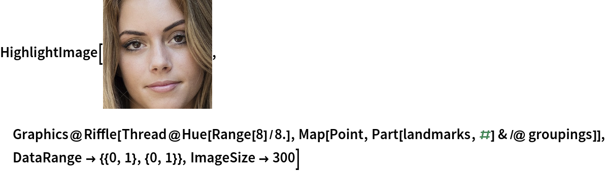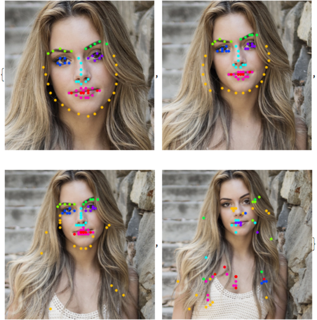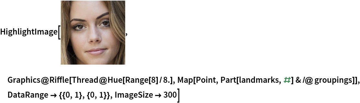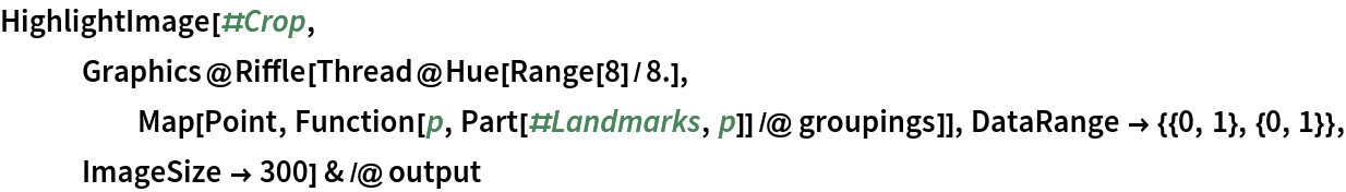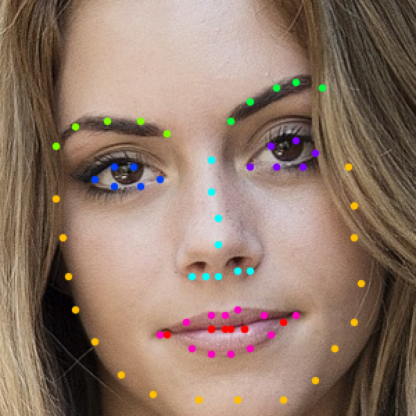 Group landmarks associated with different facial features by colors: