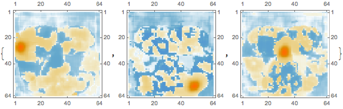 This net outputs a 64x64 heat map for each of the 68 landmarks:
