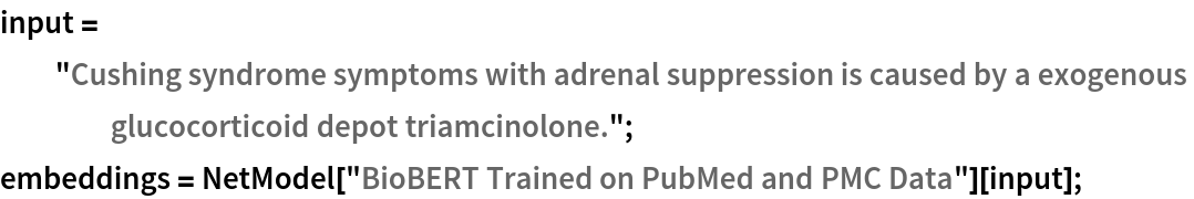 Given a piece of text, BioBERT net produces a sequence of feature vectors of size 768, which corresponds to the sequence of input words or subwords: