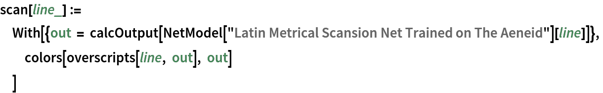 Released in 2019, this net is based on a simple sequence-to-sequence architecture that successfully determines the metrical pattern of lines of Latin poetry in dactylic hexameter. The net takes a plain line of poetry as input and outputs the likelihood that each character falls into one of three categories: a long vowel; a short vowel; or an ignored vowel, consonant, or punctuation mark.