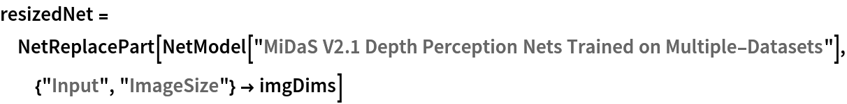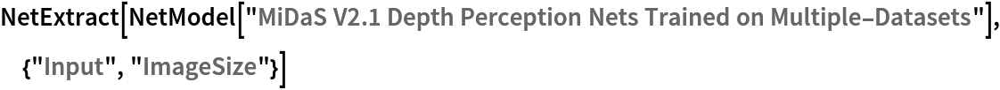 The recommended way to obtain a depth map with the same dimensions of the input image is to resample the depth map after the net evaluation. Get an image: