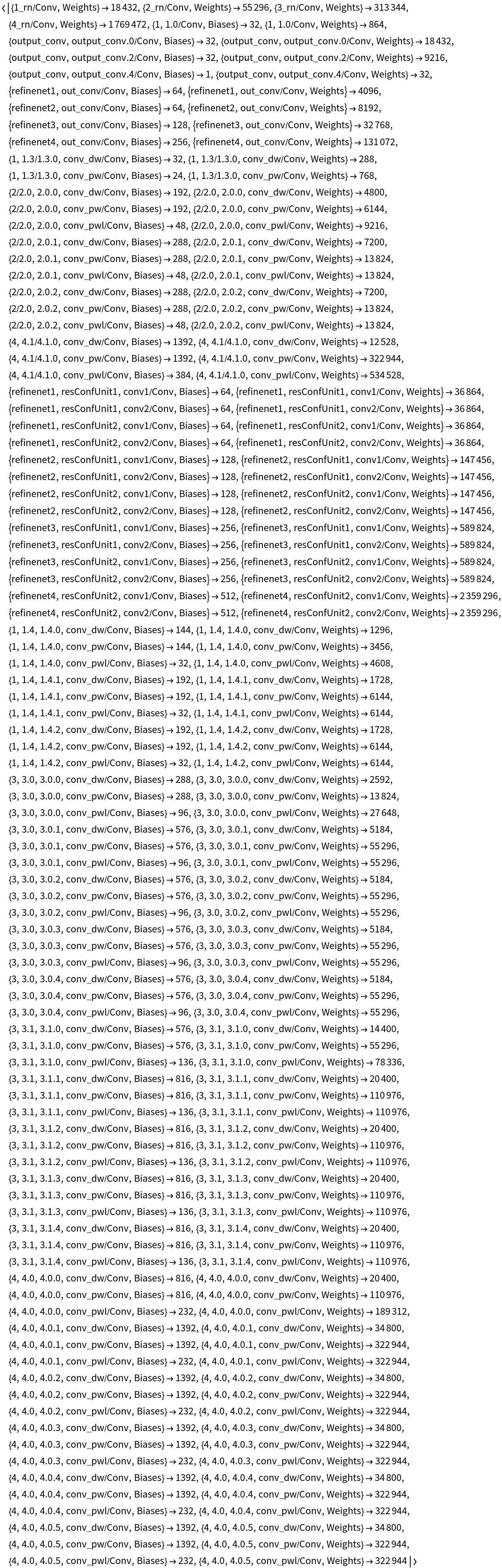 Inspect the number of parameters of all arrays in the net: