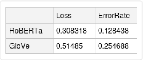 Compare the results obtained with RoBERTa and with GloVe: