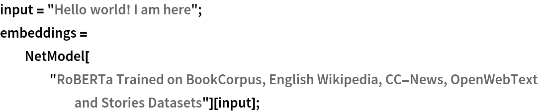 Given a piece of text, the RoBERTa net produces a sequence of feature vectors of size 768, which correspond to the sequence of input words or subwords: