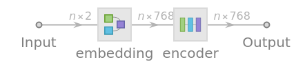 A lookup is done to map these indices to numeric vectors of size 768: