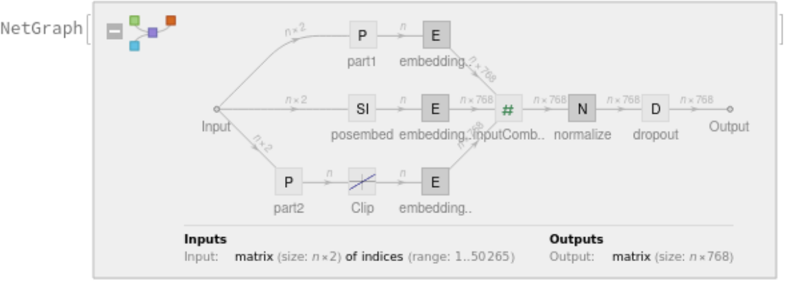 For each subword token, these three embeddings are combined by summing elements with ThreadingLayer: