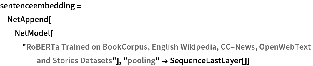 Define a sentence embedding that takes the last feature vector from RoBERTa subword embeddings (as an arbitrary choice):
