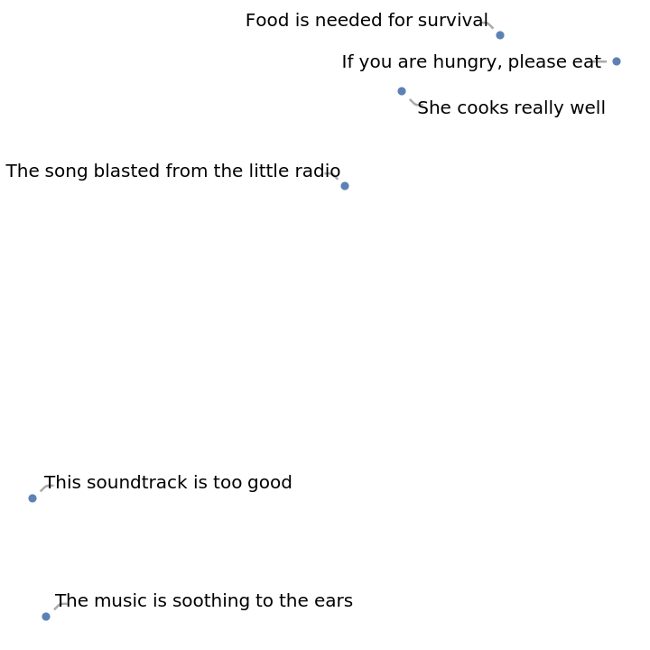 Visualize the similarity between the sentences using the net as a feature extractor: