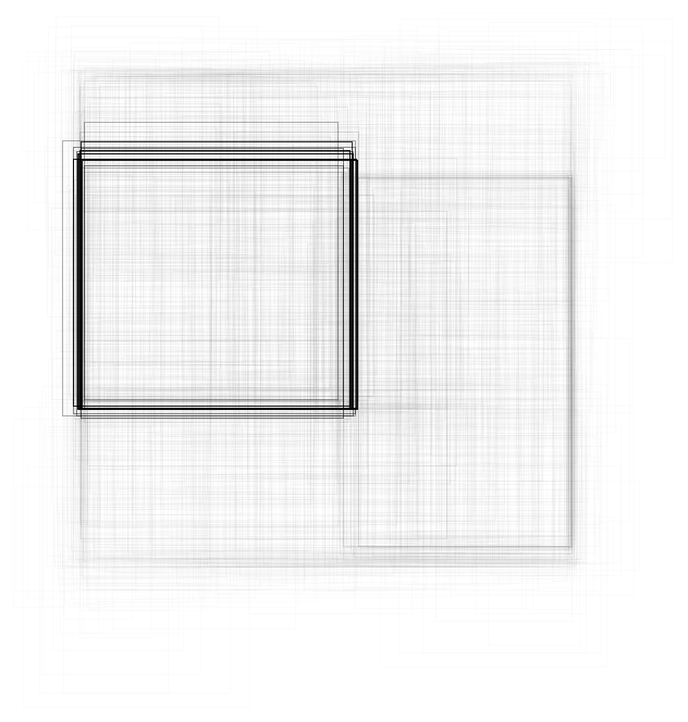 Visualize all the boxes predicted by the net scaled by their “objectness” measures: