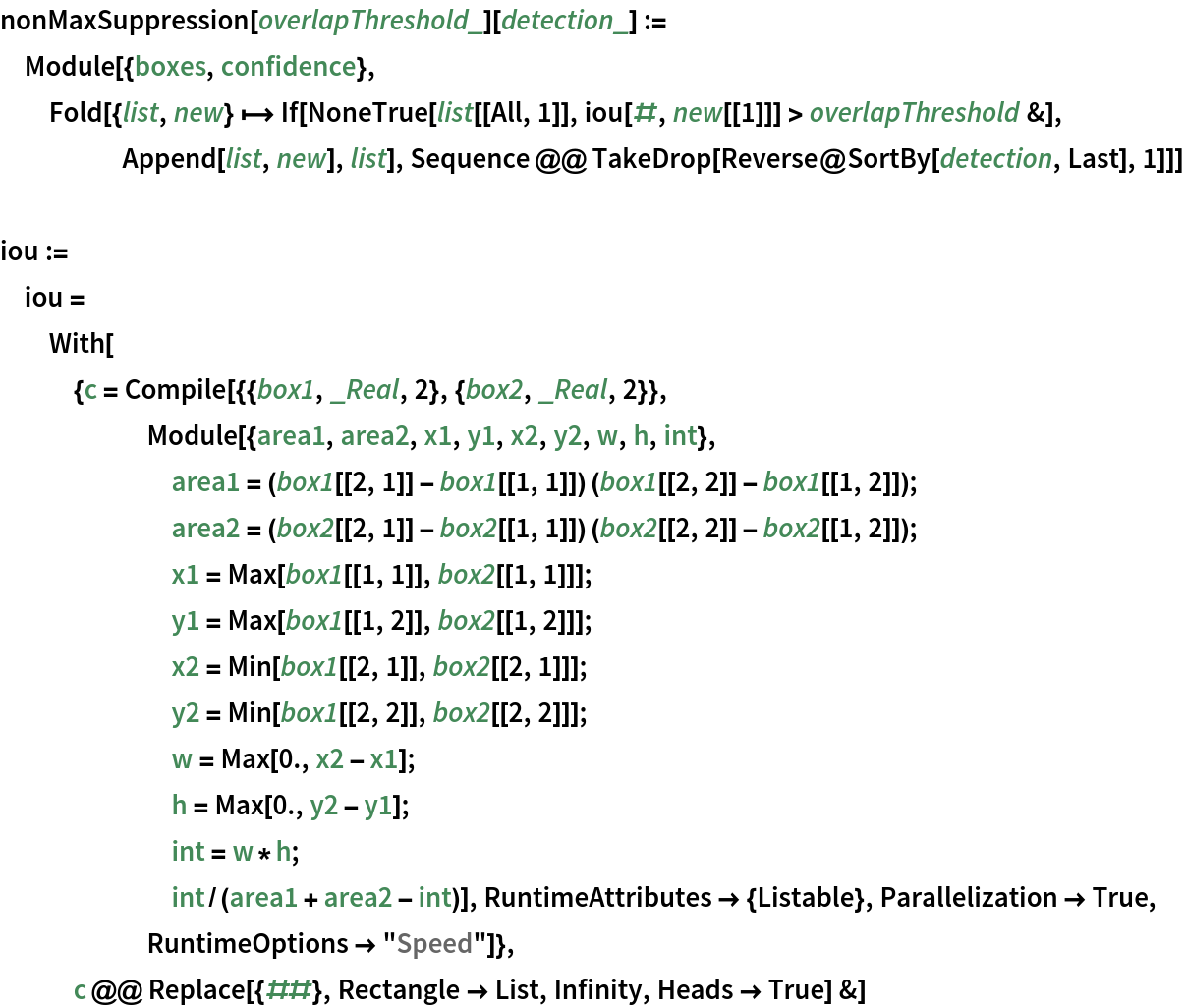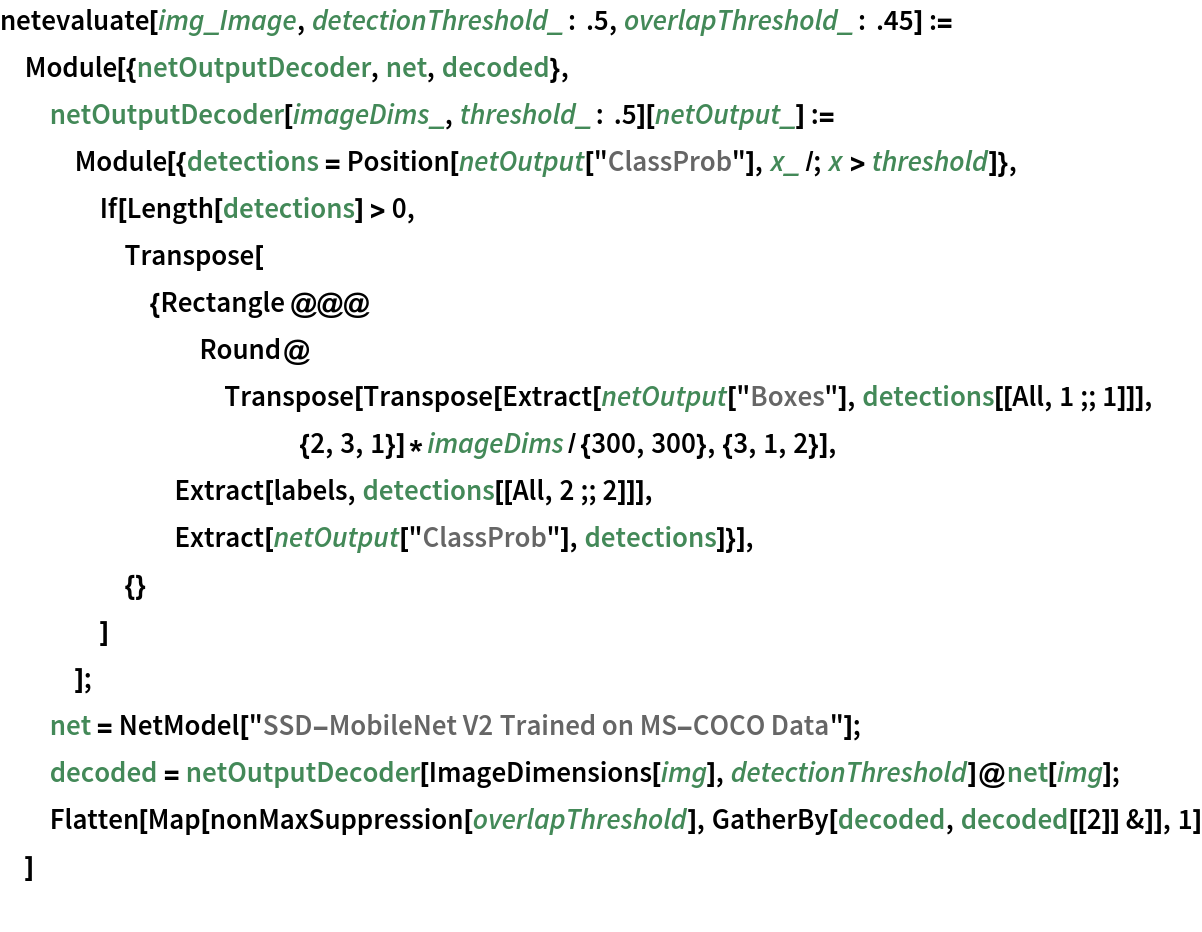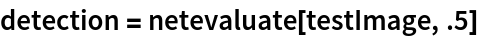 Write an evaluation function to scale the result to the input image size and suppress the least probable detections: