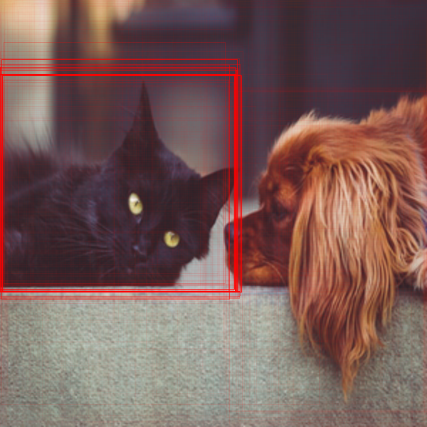 Visualize all the boxes scaled by the probability that they contain a cat: