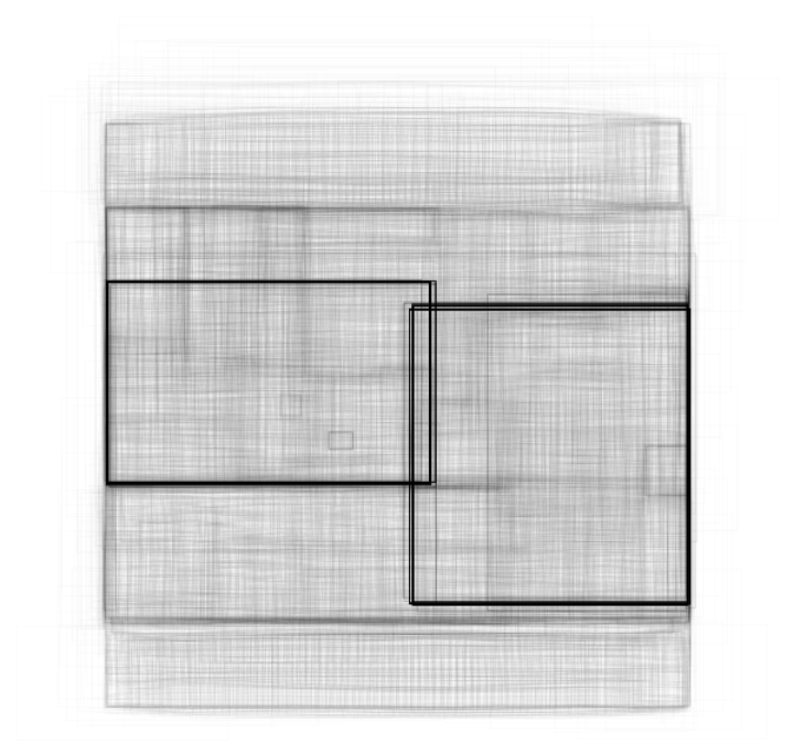 Visualize all the boxes scaled by the probability that they contain a cat:
