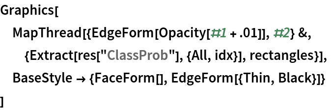 The "Boxes" key is a list of Rectangle expressions corresponding to the bounding boxes of the detected objects:
