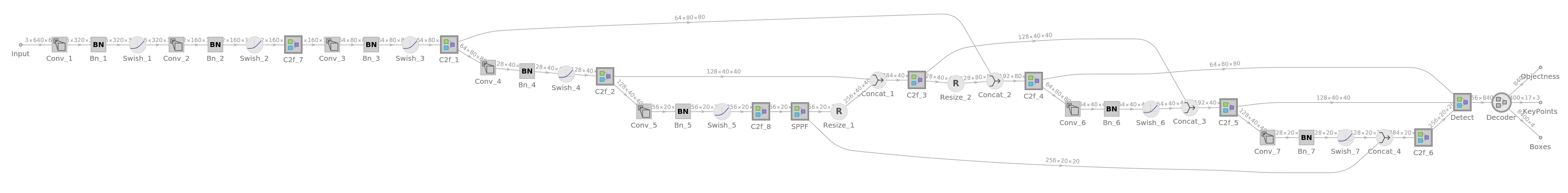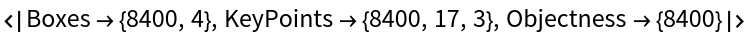 The network computes eight thousand four hundred bounding boxes, the position of the keypoints with their probabilities and the probability of an object inside the box: