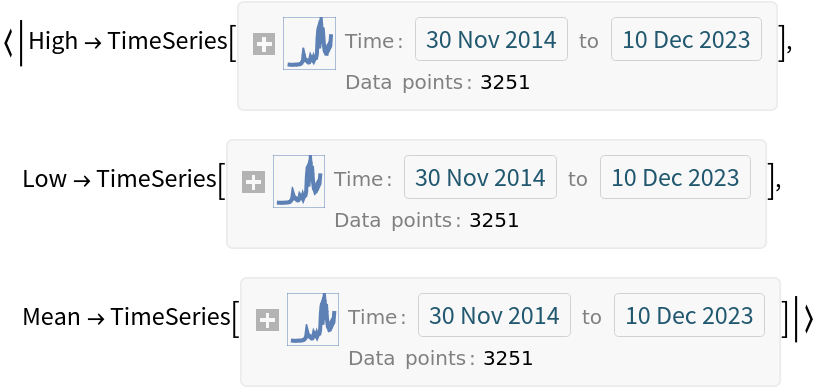 Also, FinancialData returns cryptocurrency results with different units or without units. See comparison with stocks ("GE"):