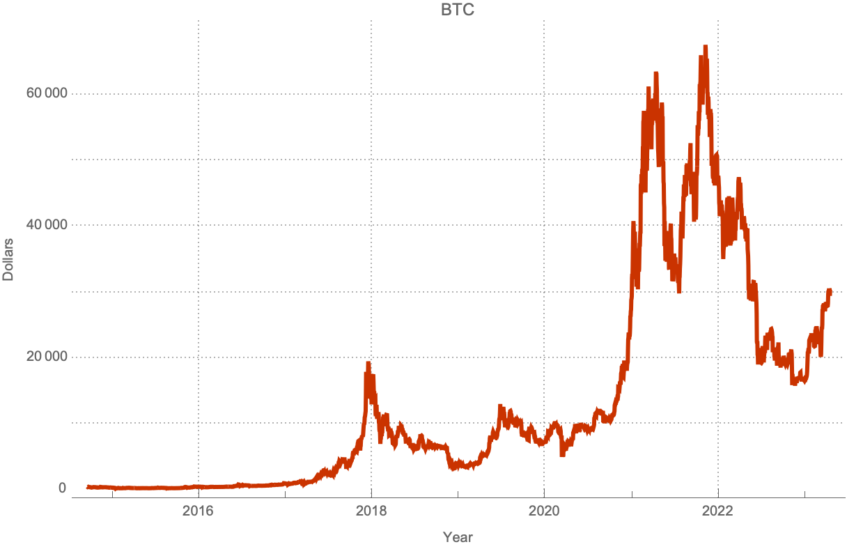 Here is a 30 day moving average of the price of BTC with using FinancialData: