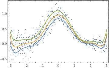 Here is a QR pipeline that finds and plots the regression quantiles at probabilities 0.25, 0.5, and 0.75 using a Chebyshev polynomial basis with 8 functions :