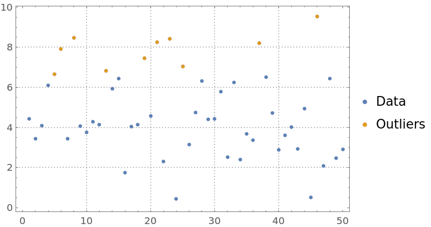 This paclet provides functions for detection and visualization of outliers in lists of numbers.