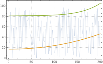 Here is a plot of the original data and the obtained regression quantiles: