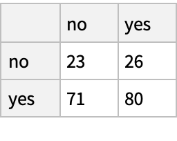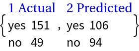 Here is a random dataset with columns "Actual" and "Predicted" that have the values "yes" and "now" and dataset's summary: