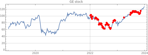 Here is a date list plot with a vertical grid line that marks the training and testing split date:
