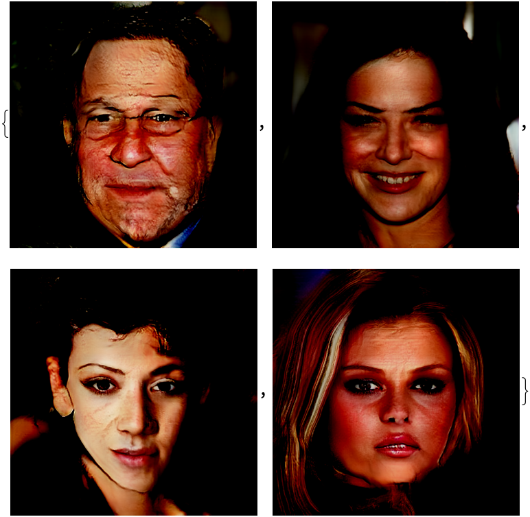 Generate four fictitious celebrity face images: