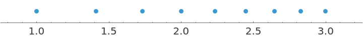 Generate a range of square roots: