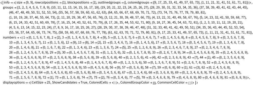 Observe that from these three lists we can compute the groups of the sudoku, and therefore the cells of the sudoku.