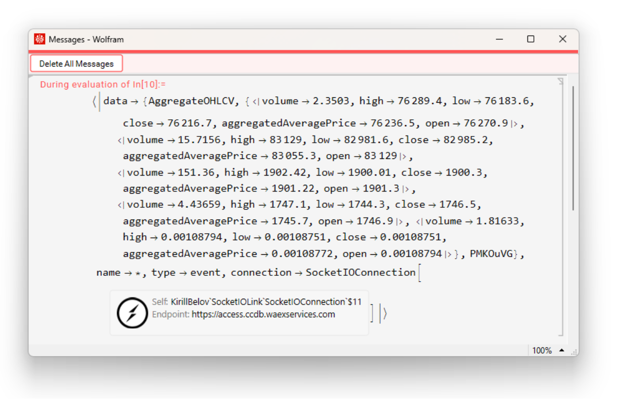 Wolfram Language client to Wolfram Cryptocurrency Database.