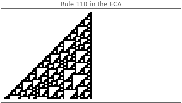 We splice rule 110 and from the ECA into the Identity Rule from rule space where k = 3, r = 1.