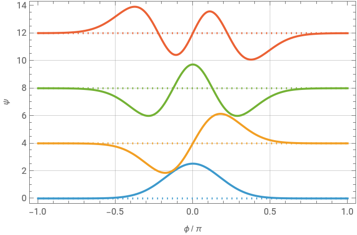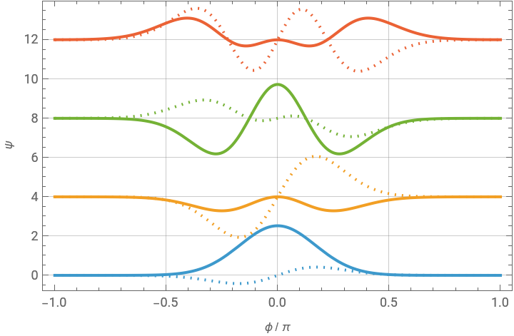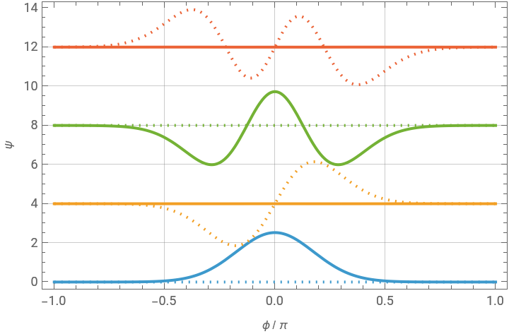 ), transmon behaves like a harmonic oscillator. In the following, the wavefunctions have been shifted by amount proportional to its energy.