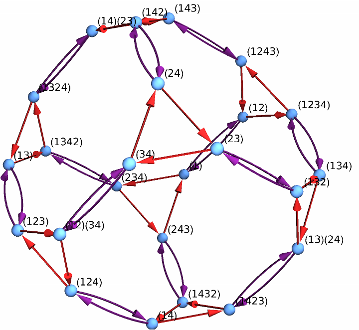 and its Cayley graph in 3-D using the well-known generators (12) and (234):