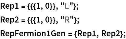 Fermions are implemented as Weyl spinors. To construct one Dirac fermion, a left-handed and a right-handed Weyl fermion are combined:
