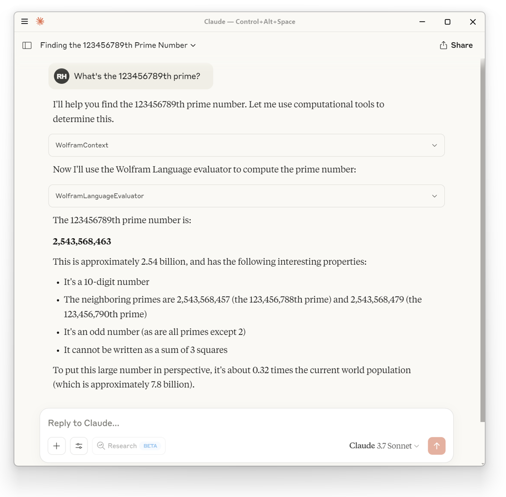 Restart Claude desktop and then it will have access to Wolfram knowledge and tools:
