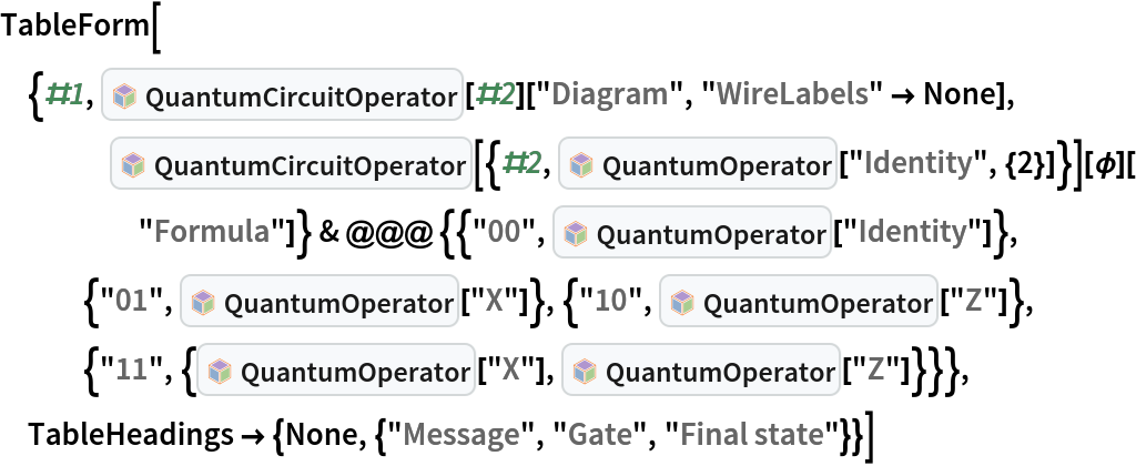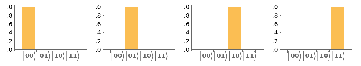 Such operations can be represented as circuits, each with a final state resulting from application of its respective gate(s) to the initial Bell state: